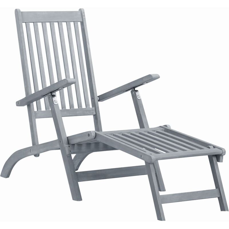 Sdraio e Poggiapiedi da Esterno Grigio Lavato Massello d'Acacia VD27480 - Hommoo