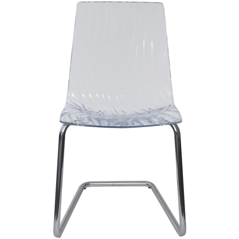 Sedia in policarbonato trasparente Gambe in acciaio cromato a C, d 22mm Dimensioni: L46 x P46 X H86,5. Peso: 6,5Kg. Disponibile nei colori Trasparente, Rosso rubino, Fumé, Malva, Fumé...Per saperne di più