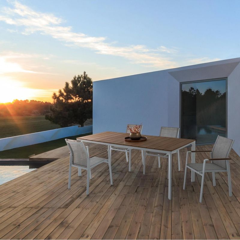Sedia Elias Bianco con inserti in legno Sedia Elias Bianco SJ60 Struttura in alluminio, verniciato a polvere (poliestere). braccioli con inserti in polywood. rivestimento seduta e schienale in textilene 2x1. impilabile Misure: 56.5a - 62b - 88h - 44.5h1 - 63h...Per saperne di più