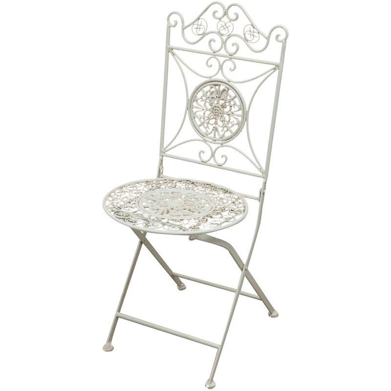 Sedia in ferro battuto pieghevole da esterno da giardino da pranzo finitura bianca anticata L39xPR39xH96 cm - BISCOTTINI