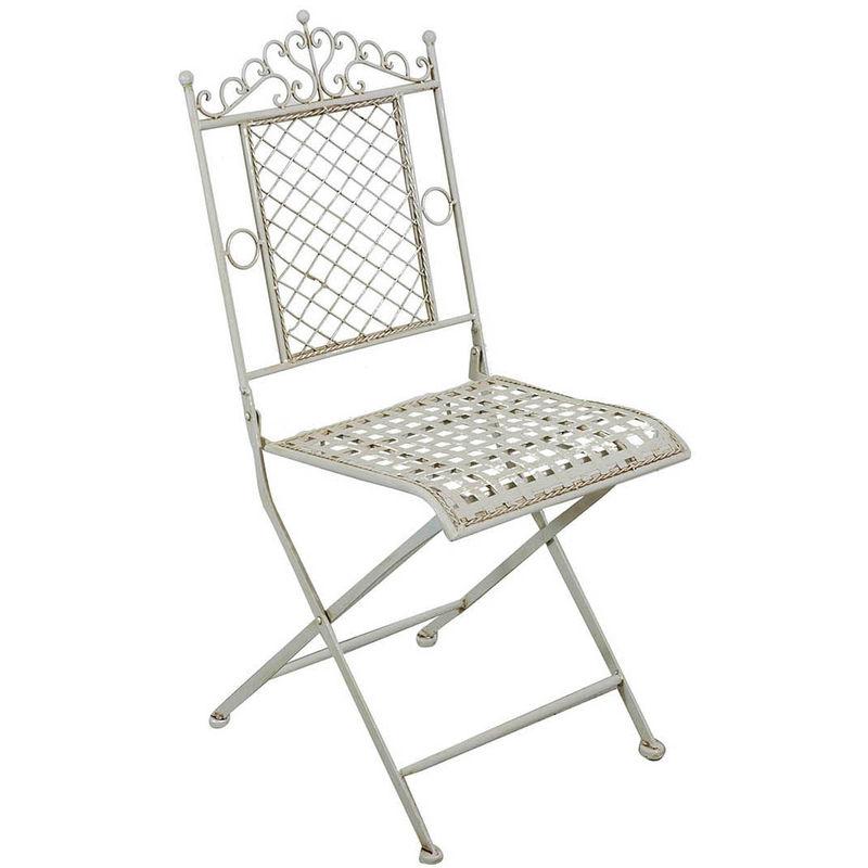 Sedia in ferro battuto pieghevole da esterno da giardino da pranzo finitura bianca anticata L41xPR49xH96 cm - BISCOTTINI
