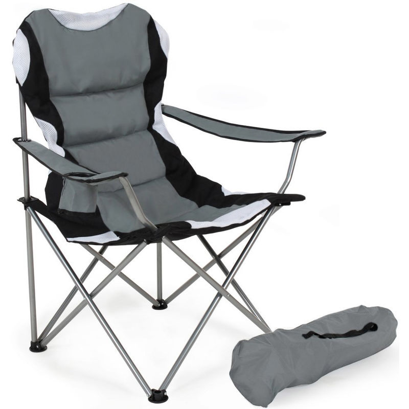 Sedia Pieghevole Campeggio Imbottita Con Borsa Camping Spiaggia Esterno Grigio