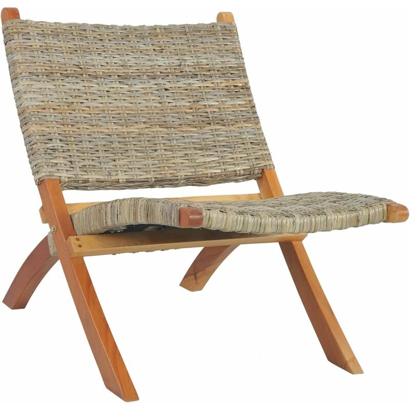 Sedia Relax in Rattan Kubu Naturale e Legno Massello di Mogano - Marrone - Vidaxl