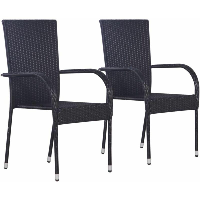 Sedie da Esterno Impilabili 2 pz in Polyrattan Nere - Nero - Vidaxl