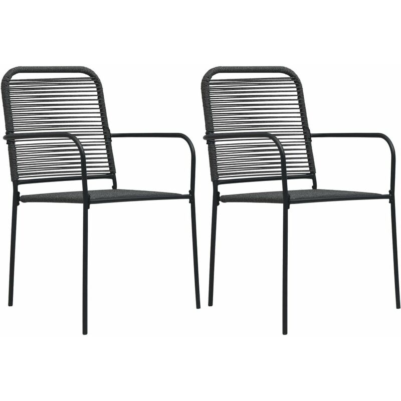 Sedie da Giardino 2 pz in Corda di Cotone e Acciaio Nere - Nero - Vidaxl