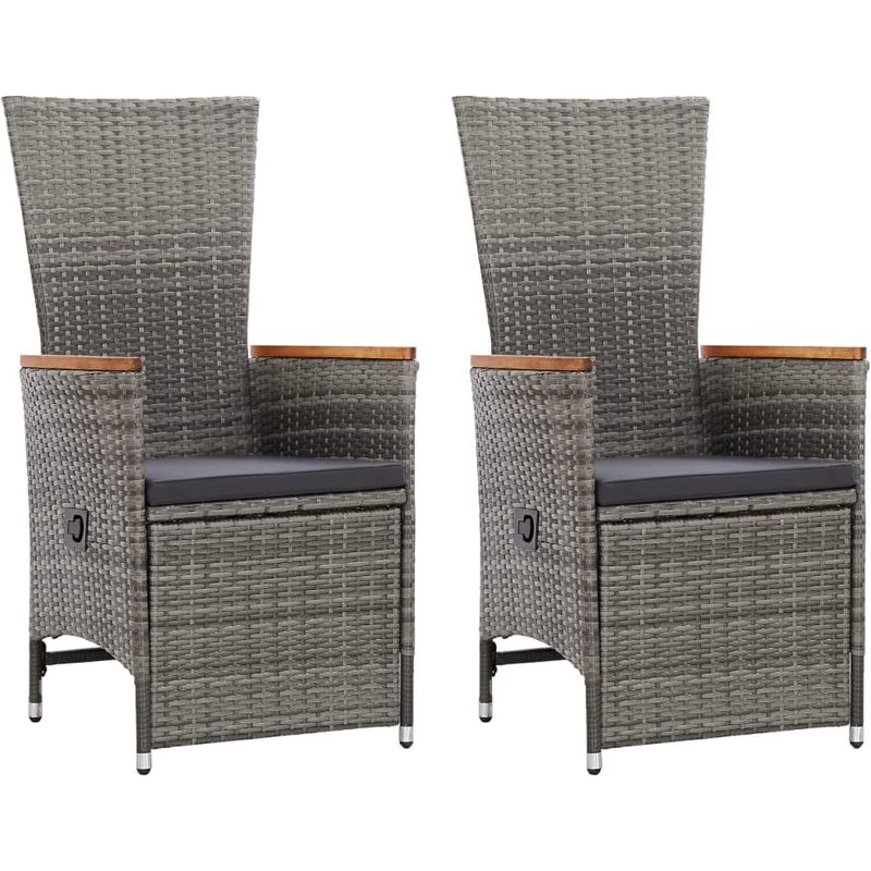 Sedie da Giardino Reclinabili 2 pz e Cuscini Polyrattan Grigio - ASUPERMALL