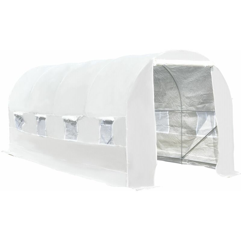 Serra Tunnel con Struttura in Acciaio Zincato e Telo in Polietilene 6 Finestre Avvolgibili Bianco 5 x 2 x 2 m - Outsunny