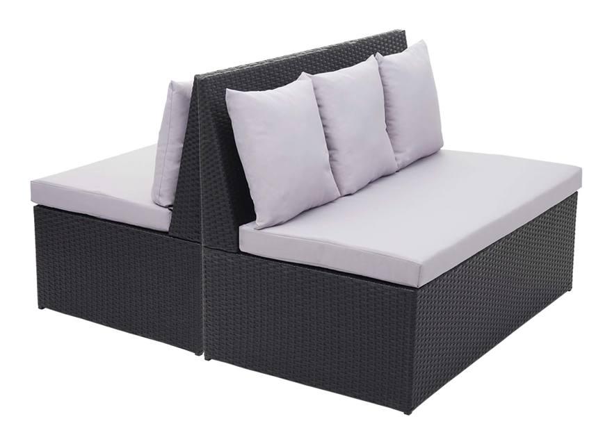 Set 2x divani sofà 2 posti da esterno HWC-G16 polyrattan nero cuscino grigio chiaro - MENDLER