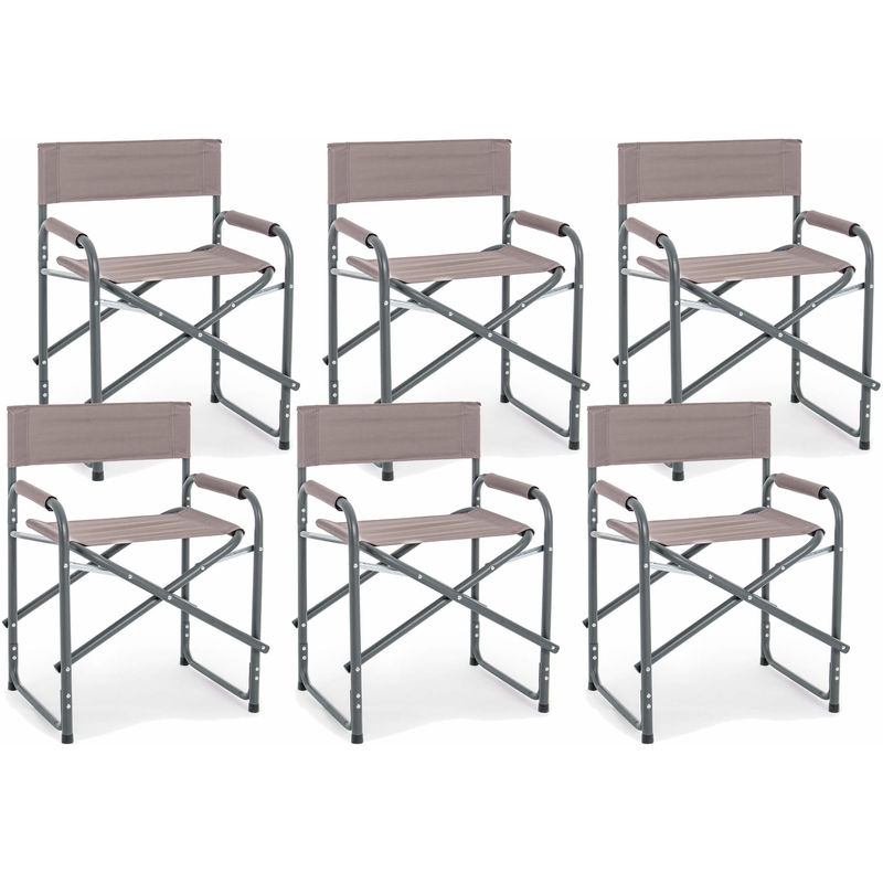 Set 6 Sedie Regista Pieghevoli Da Giardino 49x55x82 Cm In Acciaio Olbia Tortora - Duini