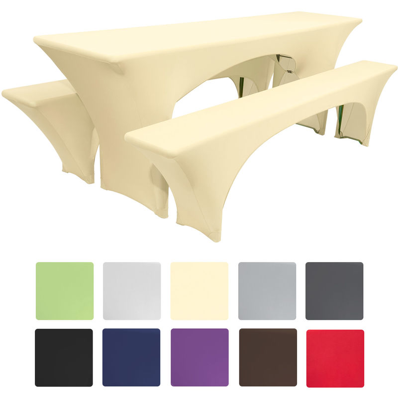 Set da 3 fodere elastiche Victoria, per panche e tavoli da birreria, picnic o catering, di Beautissu Ecru, 220x70x50 cm