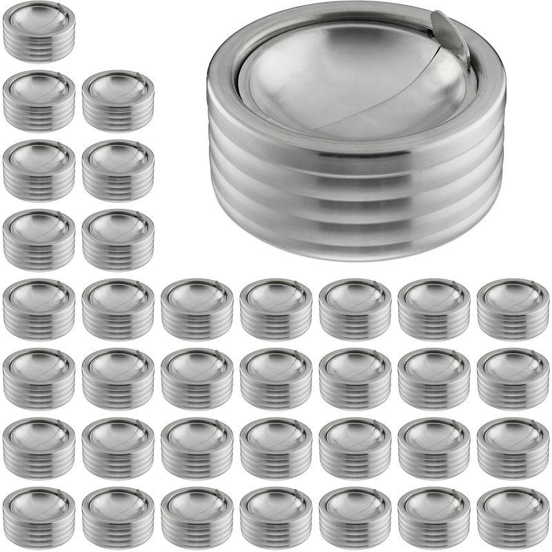 Set da 36 Posacenere Antivento, con Coperchio Ribaltabile, per Interni e Esterni, Acciaio Inox, HxD: 5,5X11,5, Argento - RELAXDAYS