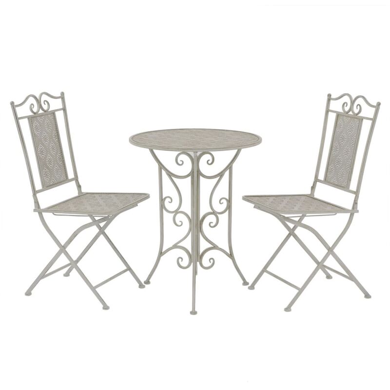 Descrizione: Questo set bistrò in stile vintage aggiungerà un tocco classico ad ogni pranzo e cena. Il nostro set da esterni in acciaio sarà il punto focale del suo giardino, balcone o patio. Il set bistrò è fatto da acciaio verniciato, resistente alle intemperie atmosferiche ed è durevole nel tempo. Le decorazioni dipinte a mano e la finitura rustica ne fanno il punto focale di ogni giardino, patio o balcone. Il set è in stile classico ed è facile da pulire con un panno umido. Le sedie possono essere piegate e chiuse per risparmiare spazio quando non in uso. La fornitura include 1 tavolo e 2 sedie pieghevoli Specificazioni: Colore: Grigio con dettagli dipinti a mano Materiale: Acciaio verniciato a polvere Dimensioni della tavola: 60 x 76 cm (Diametro x A) Dimensioni della sedia: 38,5 x 52 x 92,5 cm (L x P x A) Facile da assemblare La consegna include: 1 tavolo rotondo e 2 sedie pieghevoli...Per saperne di più