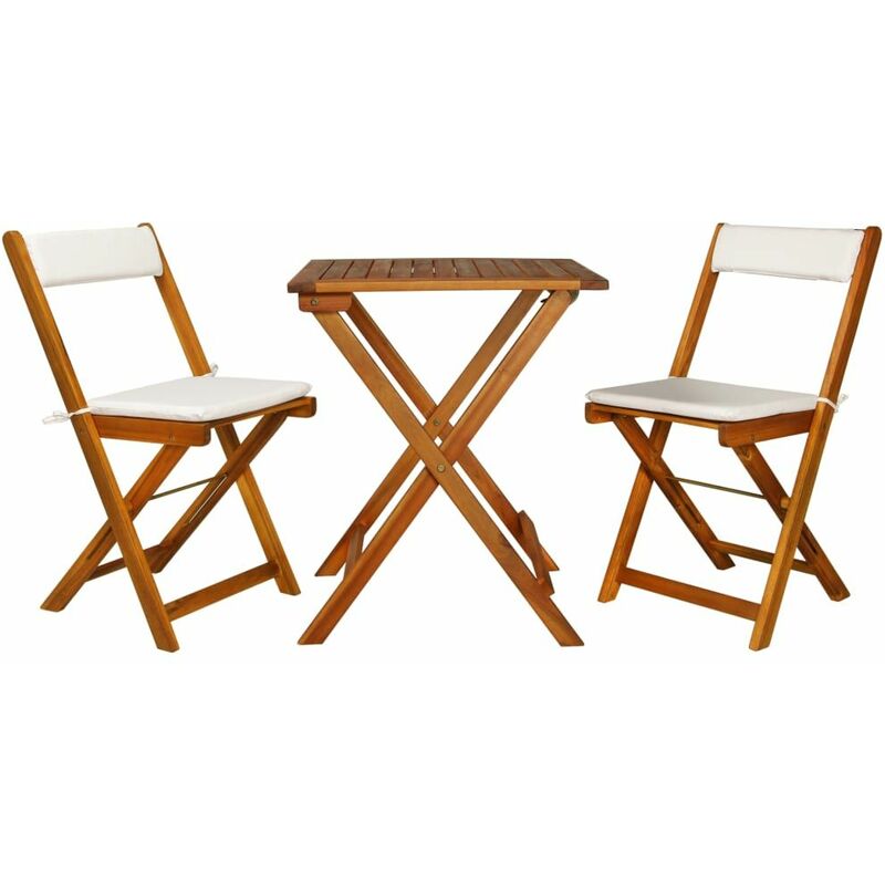 Set da Bistrot 3 pz Pieghevole con Cuscini Massello di Acacia - Marrone - Vidaxl