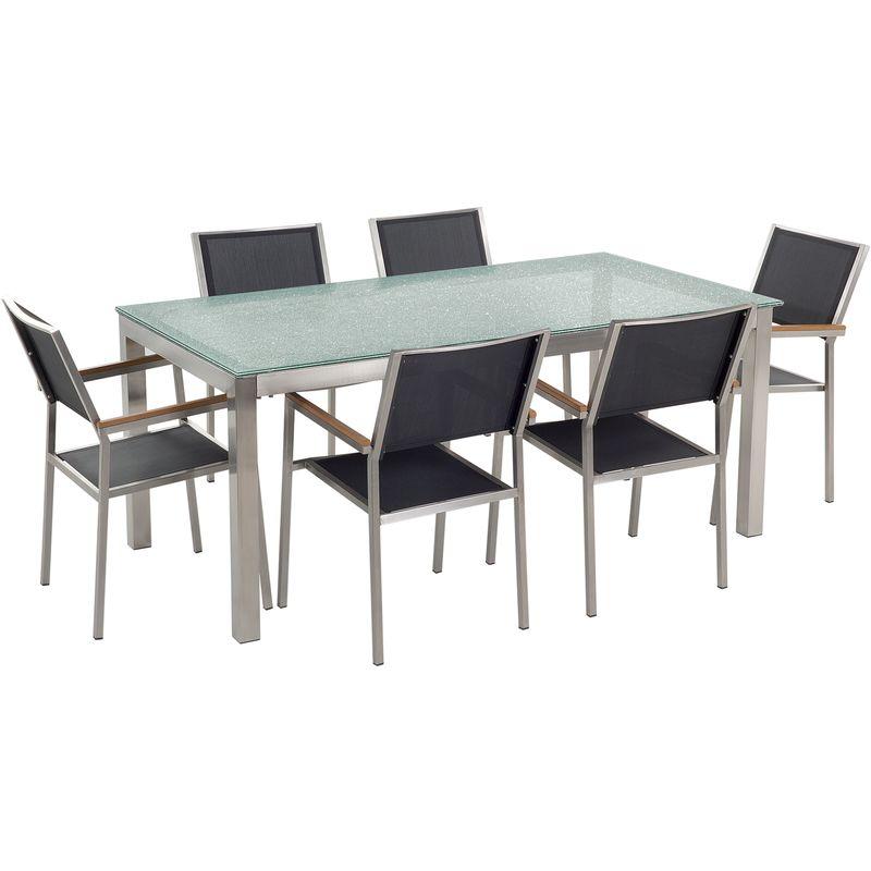 Set da giardino a 6 posti Tavolo in vetro 180cm con sedie nere GROSSETO - BELIANI