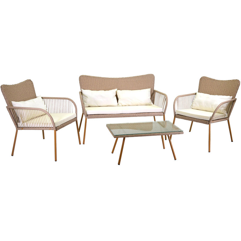 Set Da Giardino Divano 2 Poltrone E Tavolino In Polyrattan Adami Laredo Melange Crema