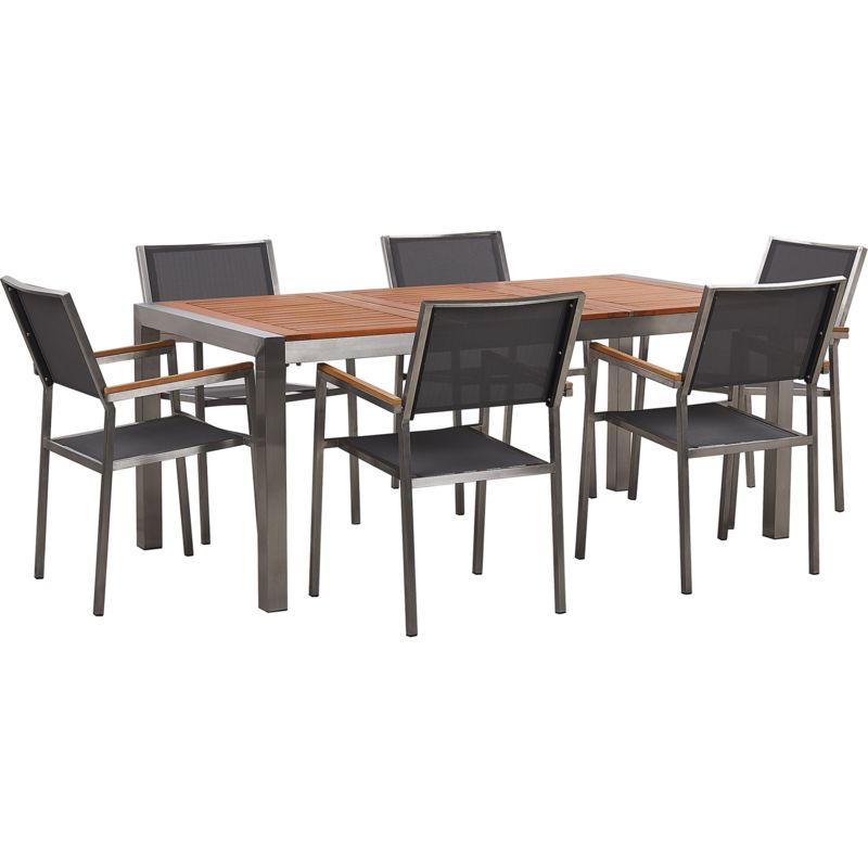 Set da giardino tavolo in eucalipto e 6 sedie in fibra tessila grigia GROSSETO - BELIANI