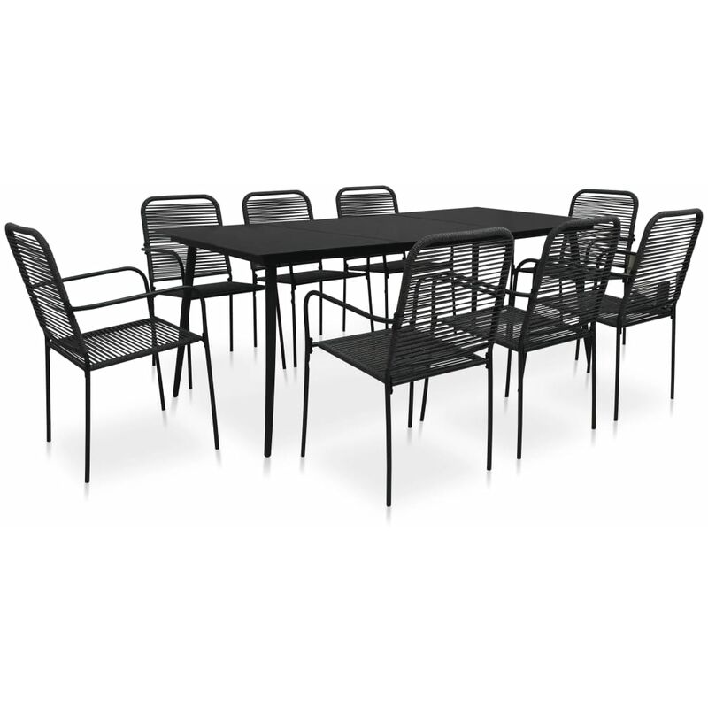 Set da Pranzo da Esterni 9 pz in Corda di Cotone e Acciaio Nero VD48934 - Hommoo