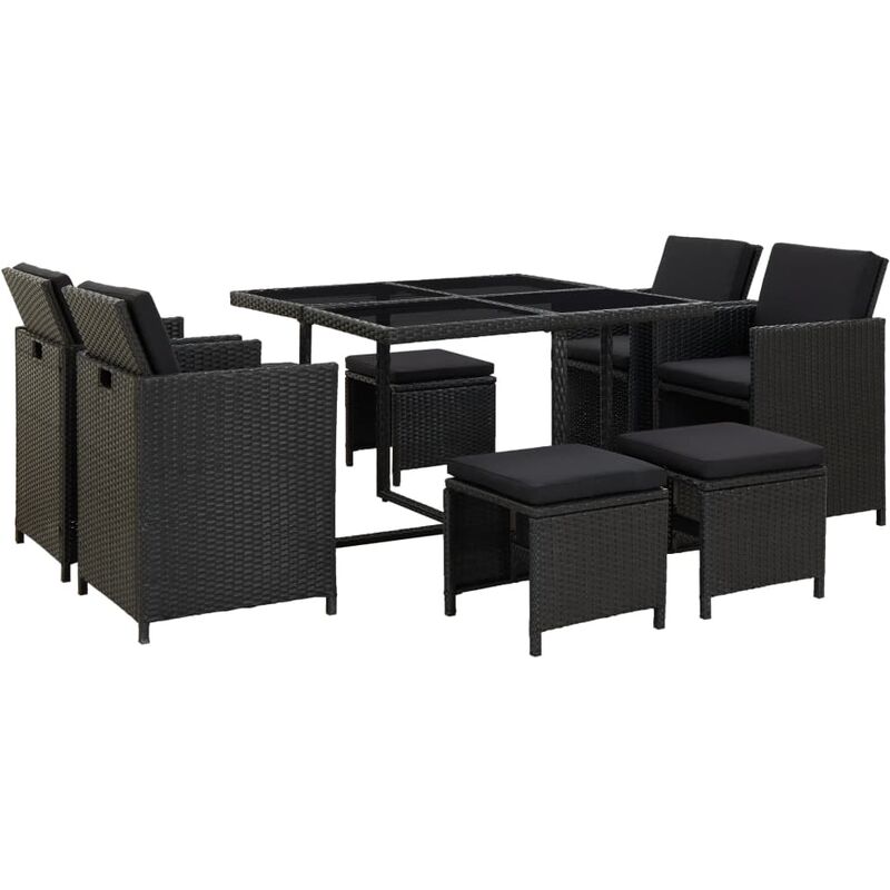 Set da Pranzo da Giardino 9 pz con Cuscini in Polyrattan Nero
