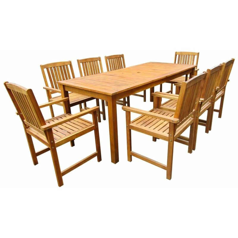 Set da Pranzo da Giardino 9 pz in Legno Massello di Acacia - Marrone - Vidaxl