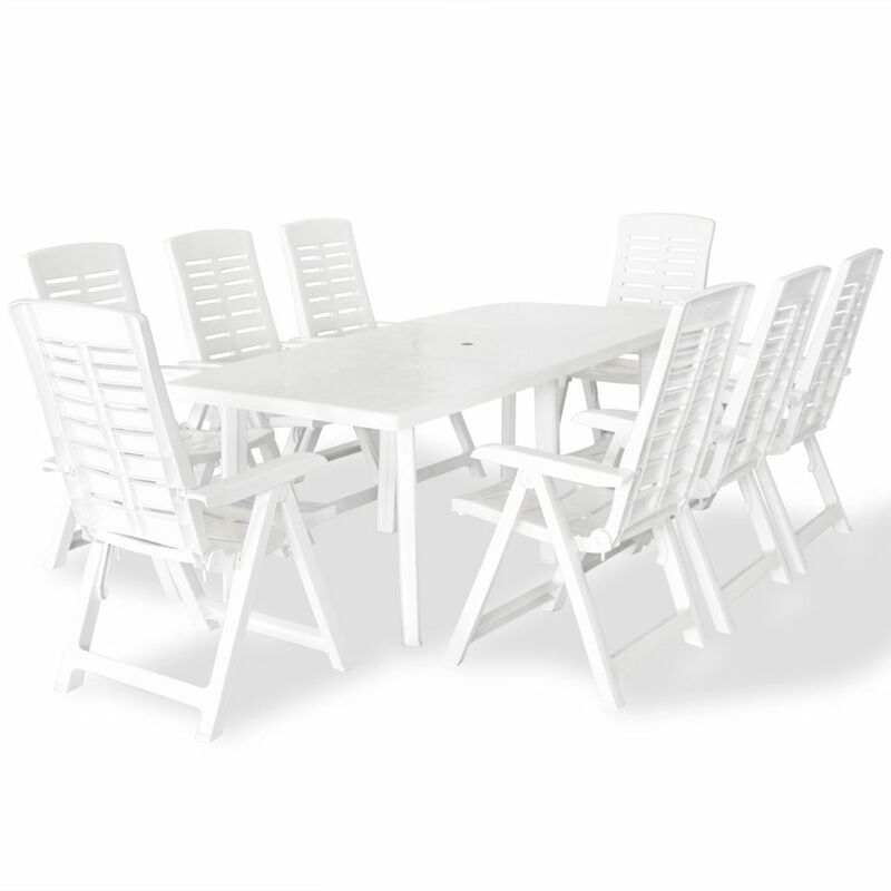 Set da Pranzo da Giardino 9 pz in Plastica Bianco VD17372 - Hommoo