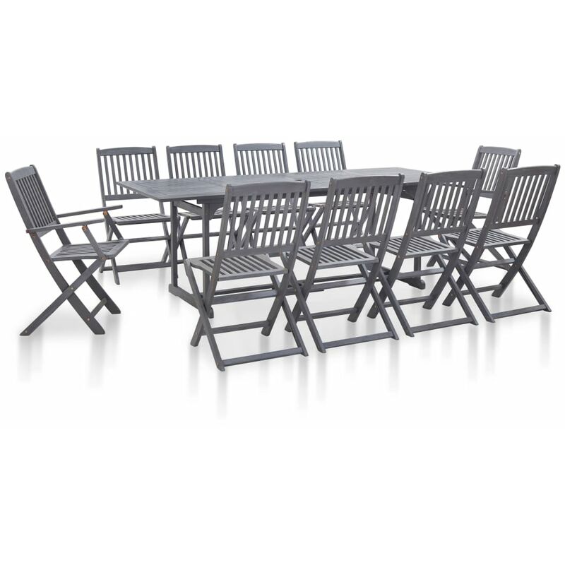 Set da Pranzo per Giardino 11pz Legno Massello di Acacia Grigio VD45465 - Hommoo - L'avis des Clients
