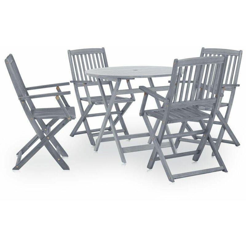 Set da Pranzo per Giardino 5 pz Legno Massello di Acacia Grigio - Grigio - Vidaxl