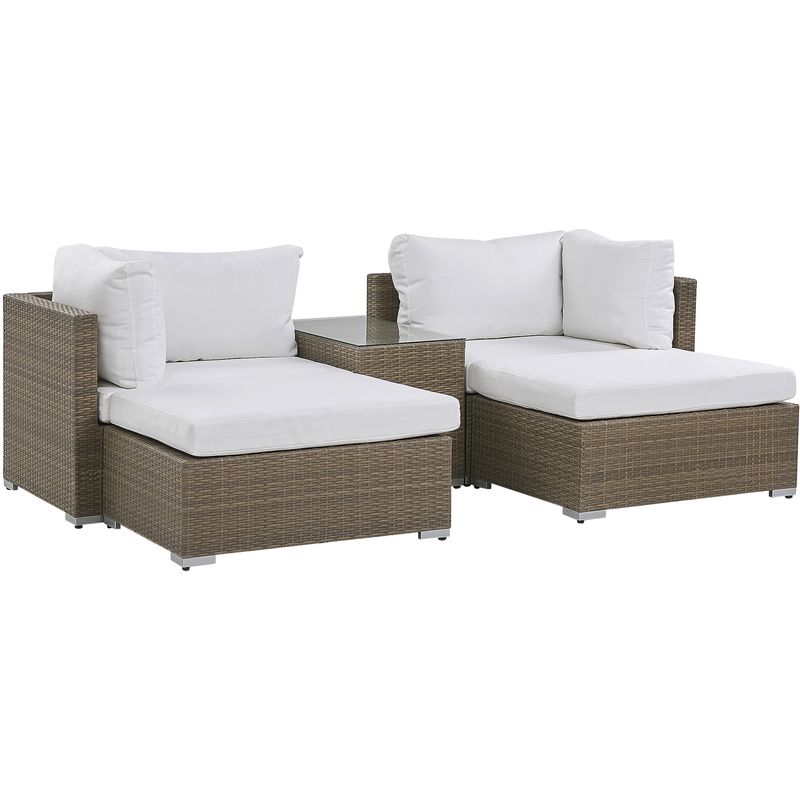 Set da salotto a 2 posti in rattan marrone chiaro con cuscini bianco crema NOTO - BELIANI