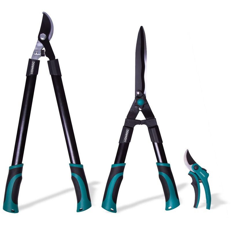 Set di cesoie da potatura da 3 pezzi. Include troncarami, cesoie per siepi e forbici. Dotate di softgrip - Vonroc