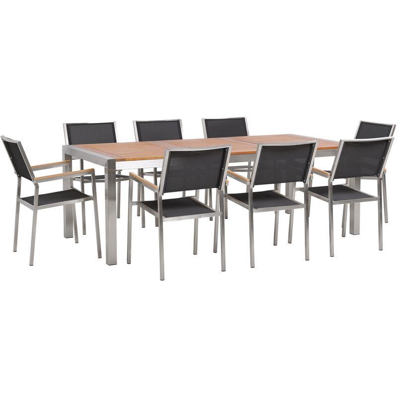 Set di tavolo 220cm in legno di eucalipto e 8 sedie in fibra sintetica grigia GROSSETO - BELIANI