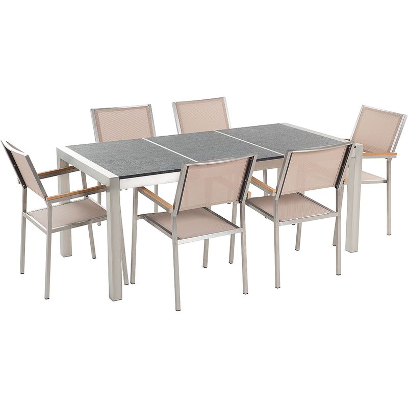 Set di tavolo e 6 sedie da giardino in acciaio, basalto e fibra tessile beige - Nero fiammato - 180cm - GROSSETO - BELIANI