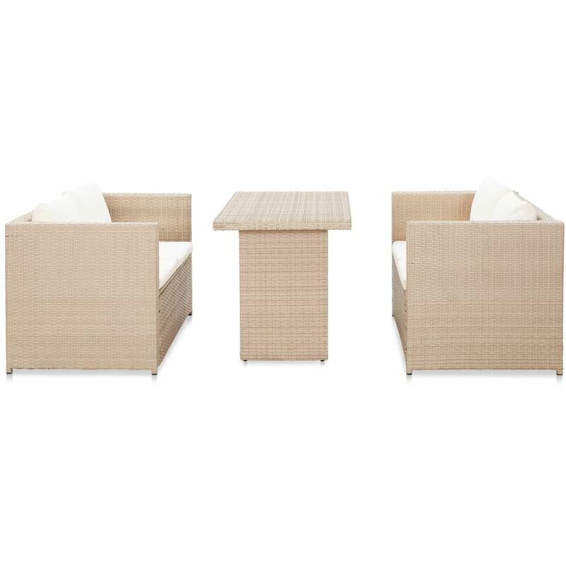 Set Divani da Giardino 3 pz con Cuscini in Polyrattan Beige - Beige - Vidaxl