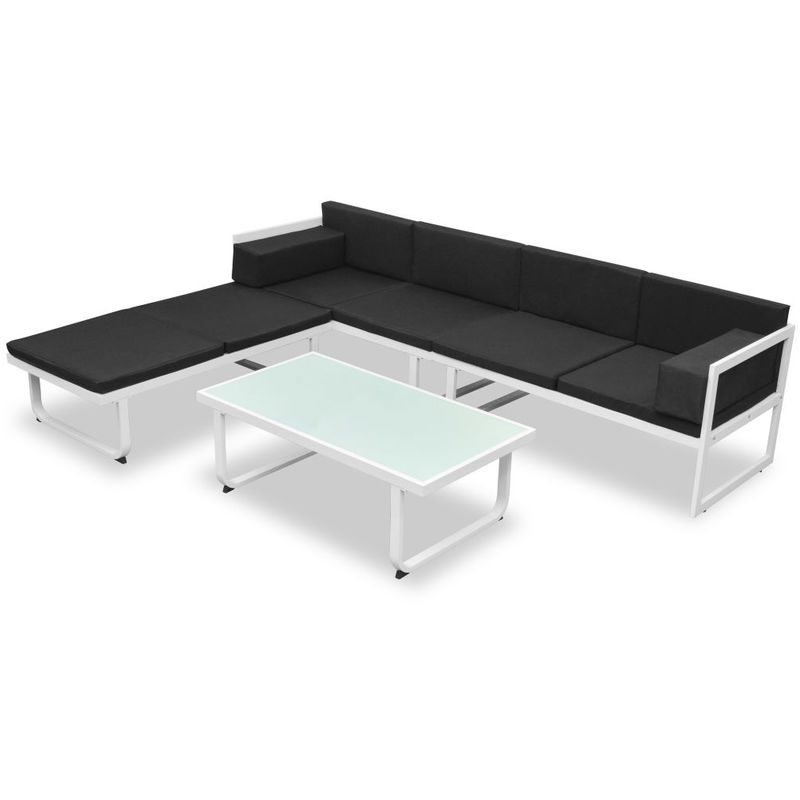 Set Divani da Giardino 4 pz con Cuscini in Alluminio Nero - ASUPERMALL