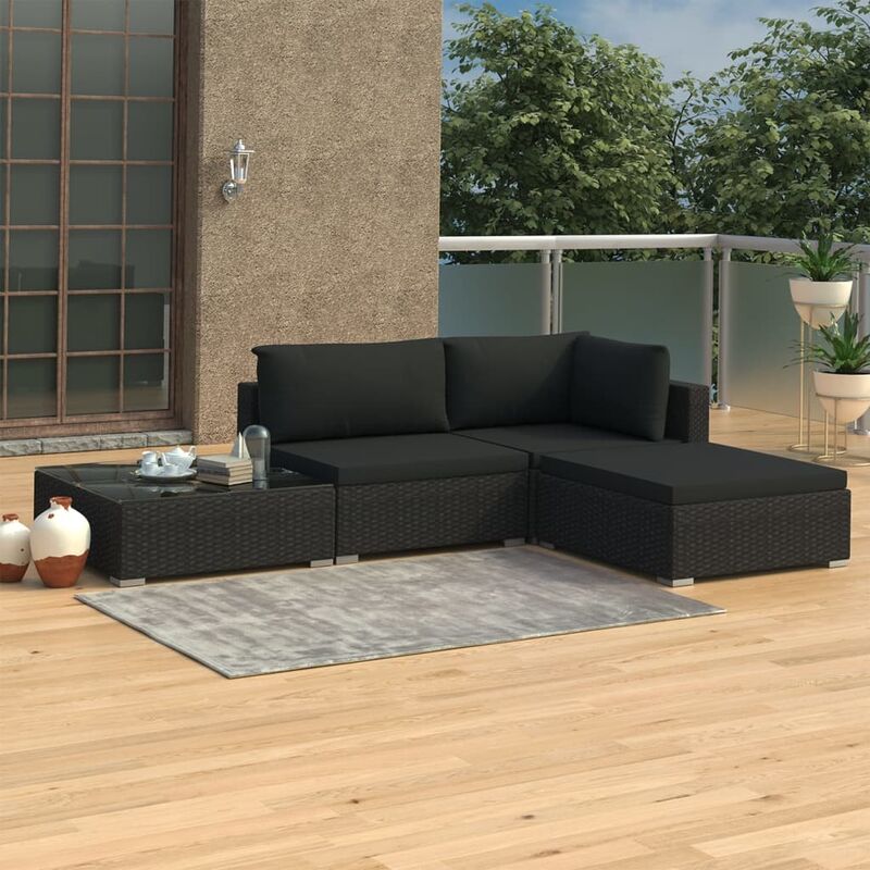 Set Divani da Giardino 4 pz con Cuscini in Polyrattan Nero VD27592 - Hommoo