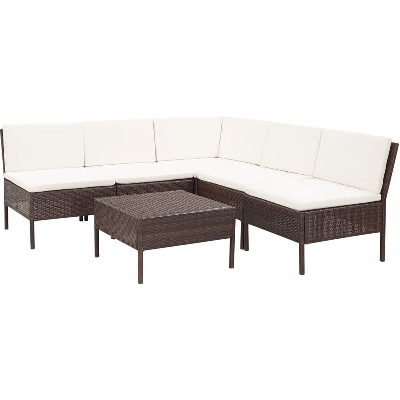 Set Divani da Giardino 6 pz con Cuscini in Polyrattan Marrone VD46784 - Hommoo