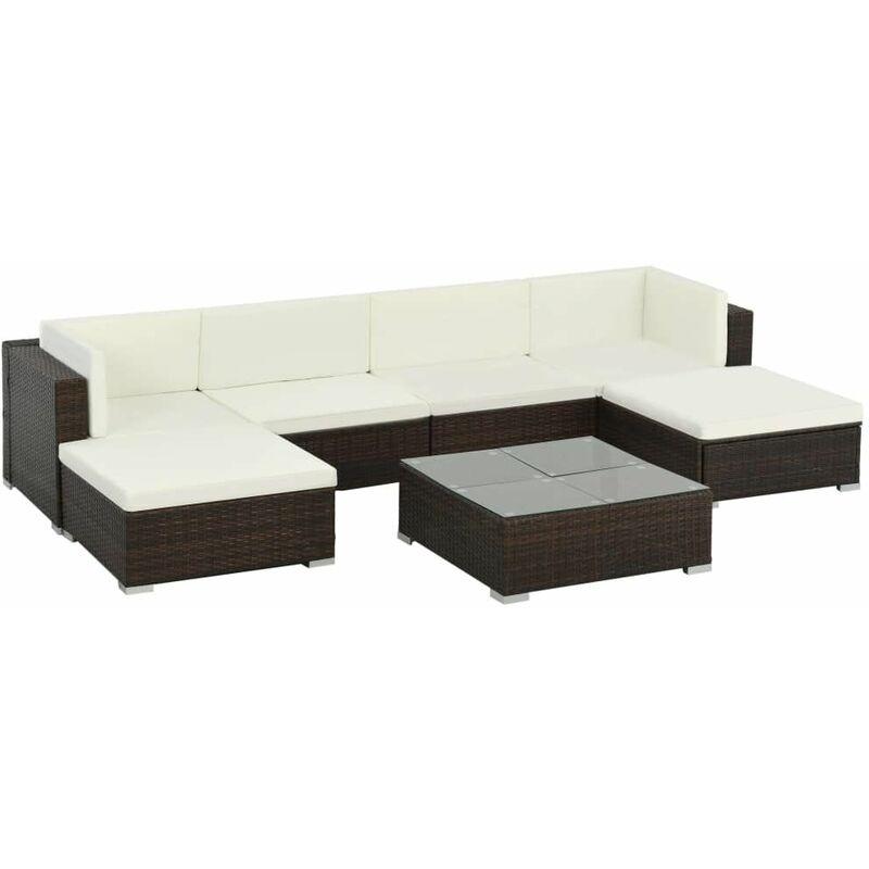 Set Divani da Giardino 7 pz con Cuscini in Polyrattan Marrone - Marrone - Vidaxl - L'avis des Clients