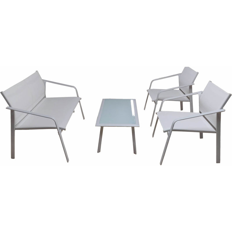 Set Salotto Da Giardino In Ferro Divano 2 Poltrone E Tavolino Gand Bianco - Vorghini