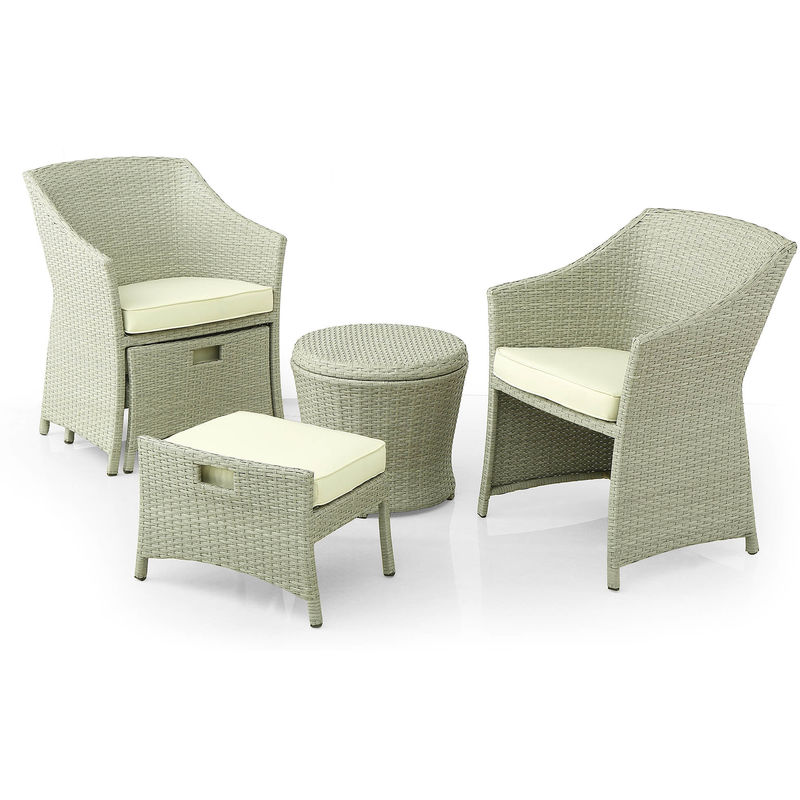 Set Salotto Da Giardino Tavolino 2 Poltrone E 2 Poggiapiedi In Rattan Kraus Vasari Beige