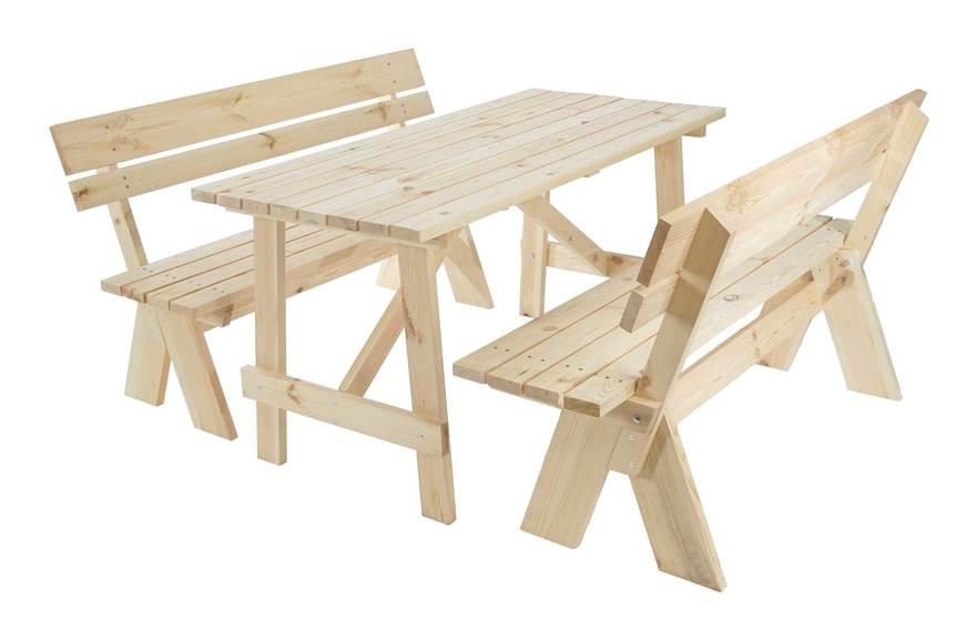 Set tavolo con 2x panche Oslo per esterni legno massiccio 148cm naturale grezzo - MENDLER