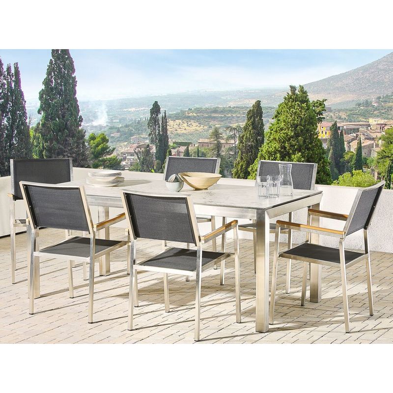 Set tavolo da giardino effetto marmo 180 cm e 6 sedie tessuto nero GROSSETO - BELIANI