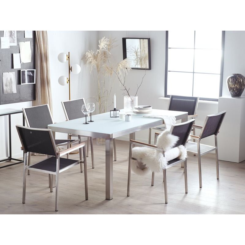 Set tavolo e sedie da giardino - In vetro temperato bianco e fibra tessile nera - tavolo 180 con 6 sedie - GROSSETO - BELIANI