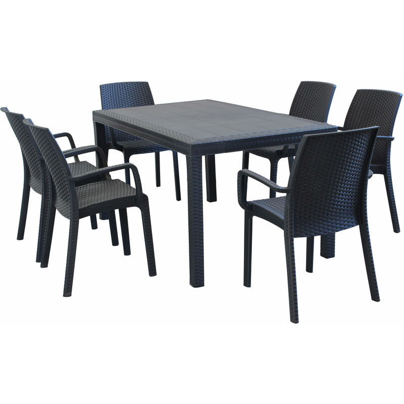 Set Tavolo Fisso In Wicker Cm 150 X 90 Compreso Di 6 Sedute Colore Antracite - MILANI HOME