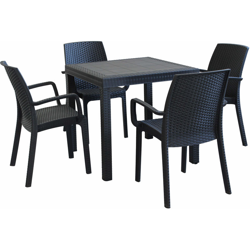 Set Tavolo Fisso In Wicker Cm 80 X 80 X 74 H Compreso Di 4 Sedute Colore Antracite - MILANI HOME
