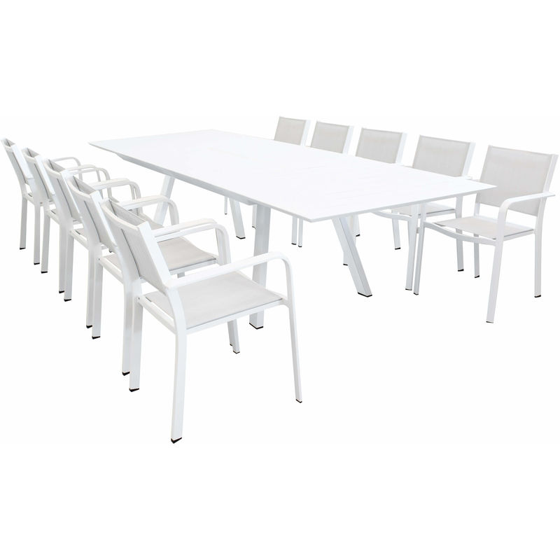 Set Tavolo Giardino Allungabile Rettangolare 200/300 X 110 Con 10 Poltrone In Alluminio Bianco Per Esterno - MILANI HOME