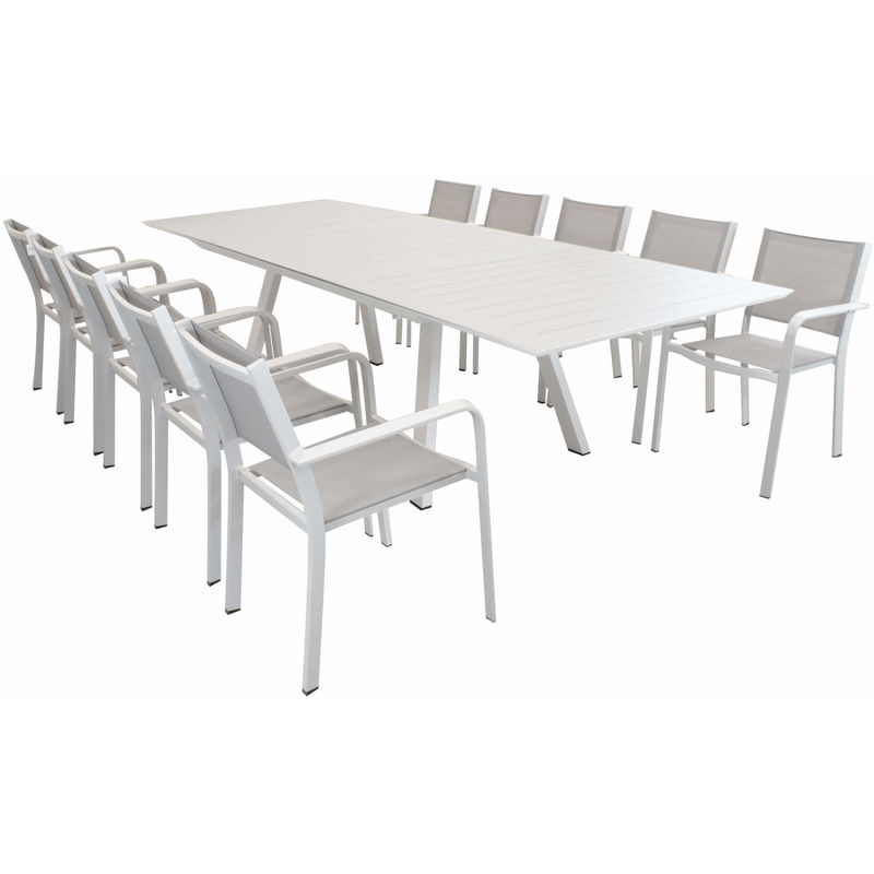 Set Tavolo Giardino Allungabile Rettangolare 200/300 X 110 Con 10 Poltrone In Alluminio Tortora Per Esterno - MILANI HOME - L'avis des Clients