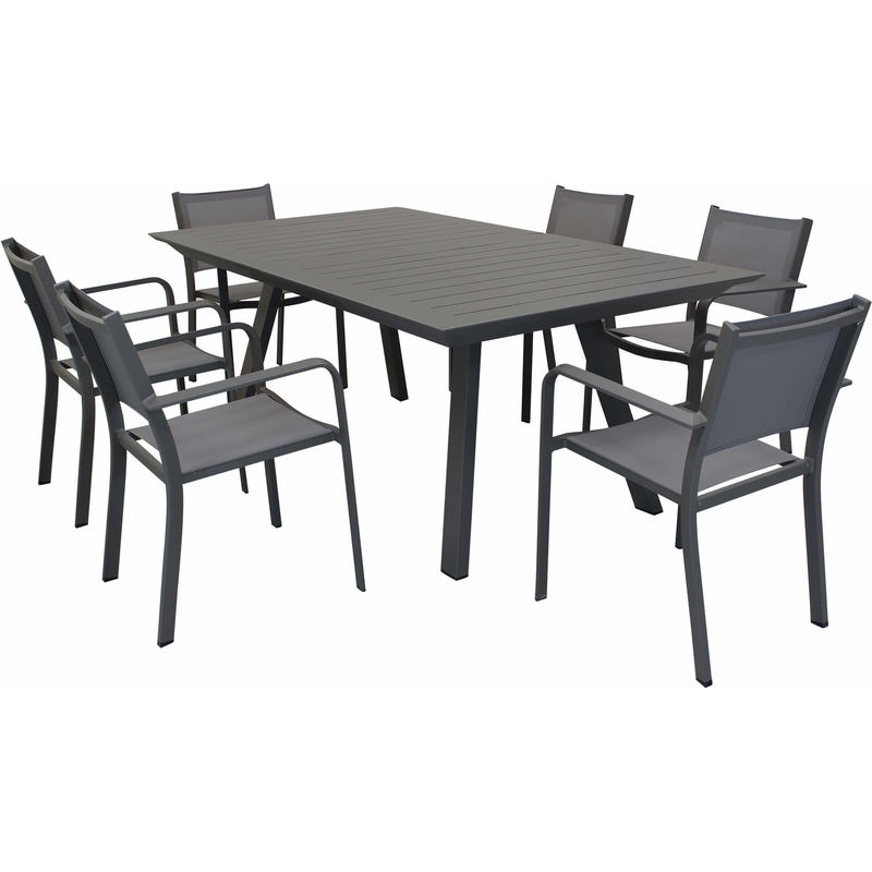 Set Tavolo Giardino Allungabile Rettangolare 200/300 X 110 Con 6 Poltrone In Alluminio Taupe Per Esterno - MILANI HOME - L'avis des Clients