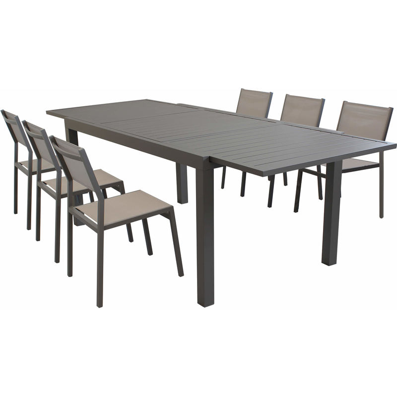 Set Tavolo Giardino Rettangolare Allungabile 160/240 X 90 Con 6 Sedie In Alluminio E Textilene Taupe Da Esterno - MILANI HOME - L'avis des Clients
