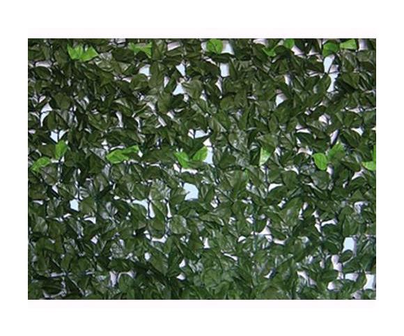 Siepe artificiale ornamentale in rotoli con supporto rigido posteriore di rete plastica estrusa e con tralci di foglie di lauro a copertura, 556gr/mq - 648 foglie/mq. 1x3 mt....Per saperne di più