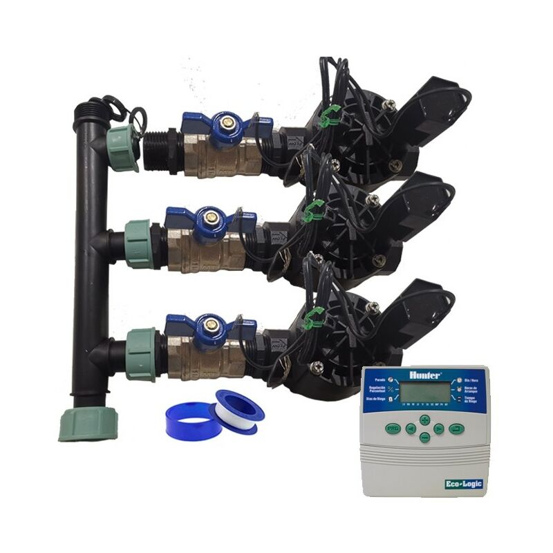 Sistema di Irrigazione Automatica a 3 Zone con Programmatore ELC401 +Elettrovalvole Rain Bird hv 1'' 24v