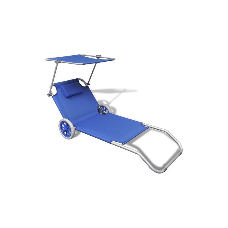 Spiaggina a carrello sdraio pieghevole lettino prendisole con ruote e tettuccio -Blu / Confezione da 1 pezzo - MILO - L'avis des Clients