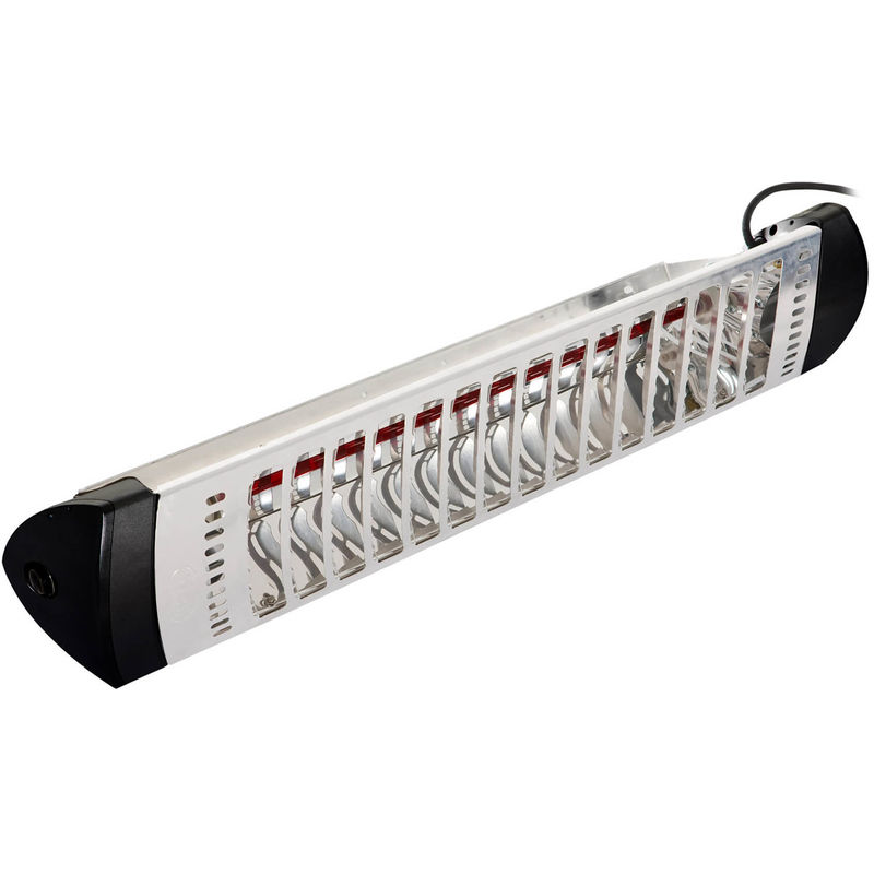 Stufa Elettrica ad Infrarossi Stufa Elettrica ad Infrarossi da Parete 1200W Moel Sharklite 712N Sharklite è un riscaldatore a infrarossi concepito per soddisfare le necessità di solidità, senza trascurare il design. Le parti metalliche sono in alluminio e le parti plastiche sono in nylon caricato vetro. Robusto e non deperibile, il prodotto resiste all'ossidazione, alle intemperie, al calore e ai raggi UV. Il grado di tenuta alla polvere e all'acqua è IP55, che garantisce la resistenza a pioggia, getti d'acqua, sabbia e polvere. La resistenza agli urti è assicurata da una griglia robusta e dal montaggio della lampada su supporti siliconici. La produzione delle parti essenziali, come il riflettore parabolico e la griglia di protezione, avviene con un sistema brevettato MO-EL, che utilizza piegature curvilinee programmate . Questa tecnica consente di realizzare la massima precisione geometrica per la migliore efficacia di irraggiamento. Lampada ruby, potenza 1200 W. Supporto a muro e...Per saperne di più